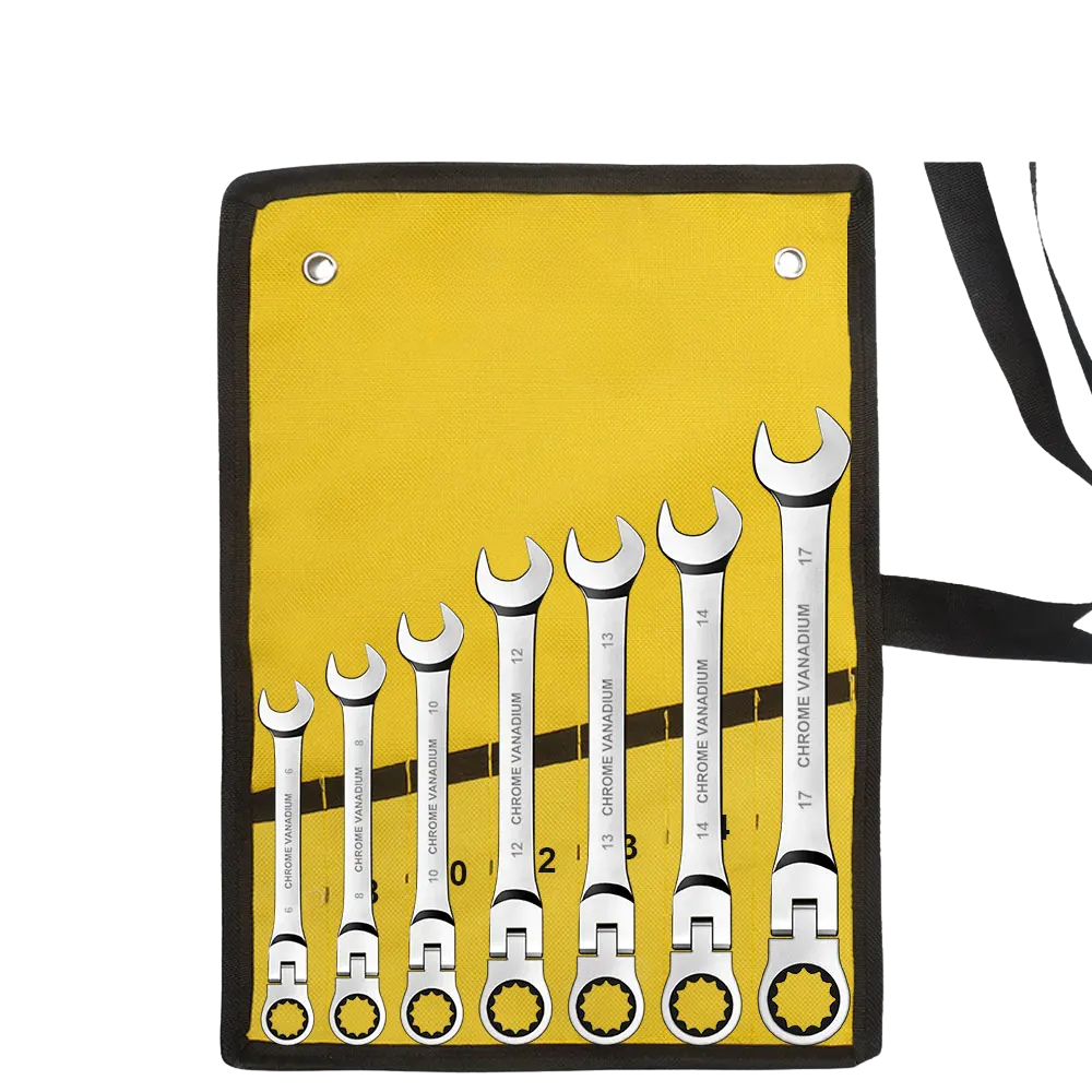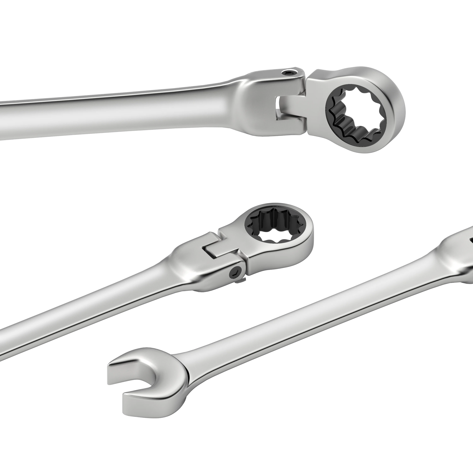 Set clés à cliquet tête flexible en acier haute performance. Construction robuste pour tous vos travaux.
